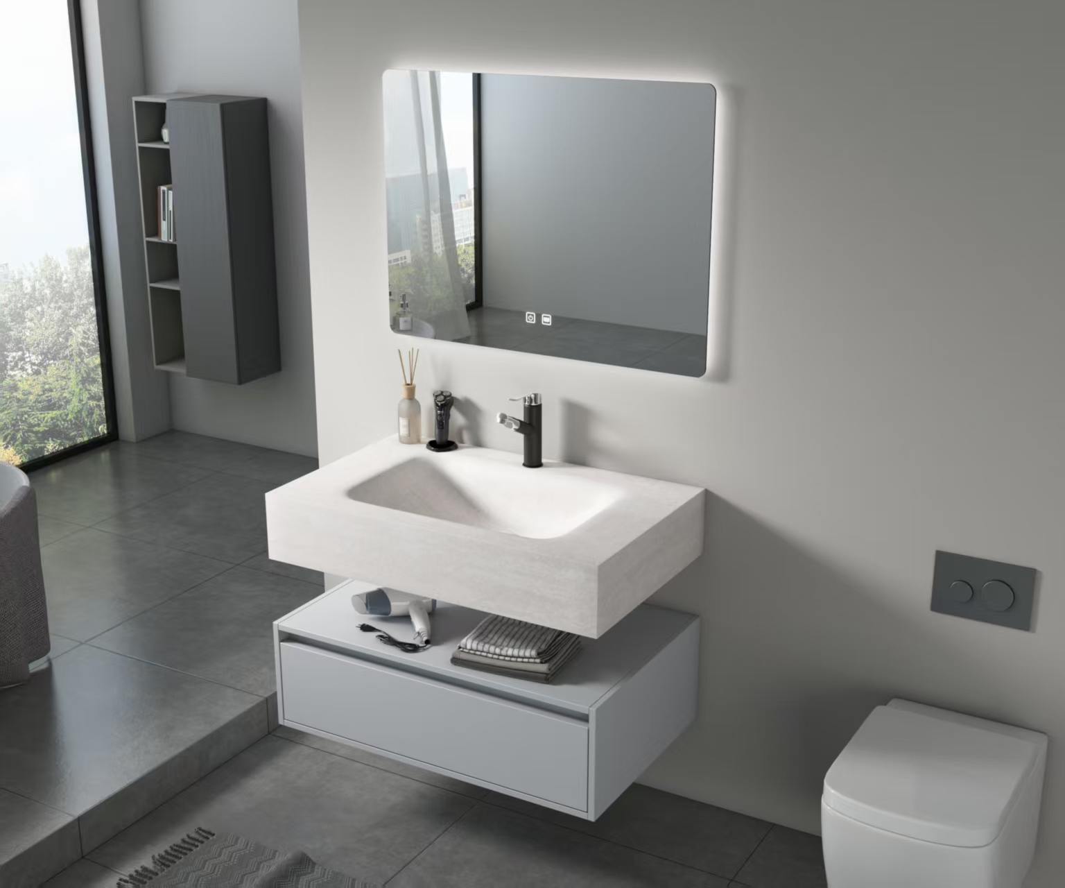 UPPER SHELF MARBLE 80*50*15LOWER DRAWER SHELF GREY 80*50*25MIRROR 3 COLOUR LED 80*60